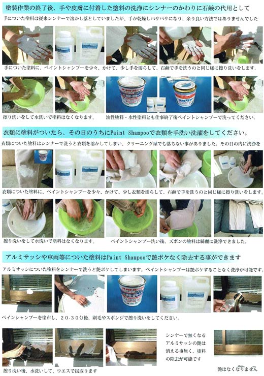 - Paint Shampooは、油性塗料と水性塗料を洗う石鹸から生まれた洗浄剤です。