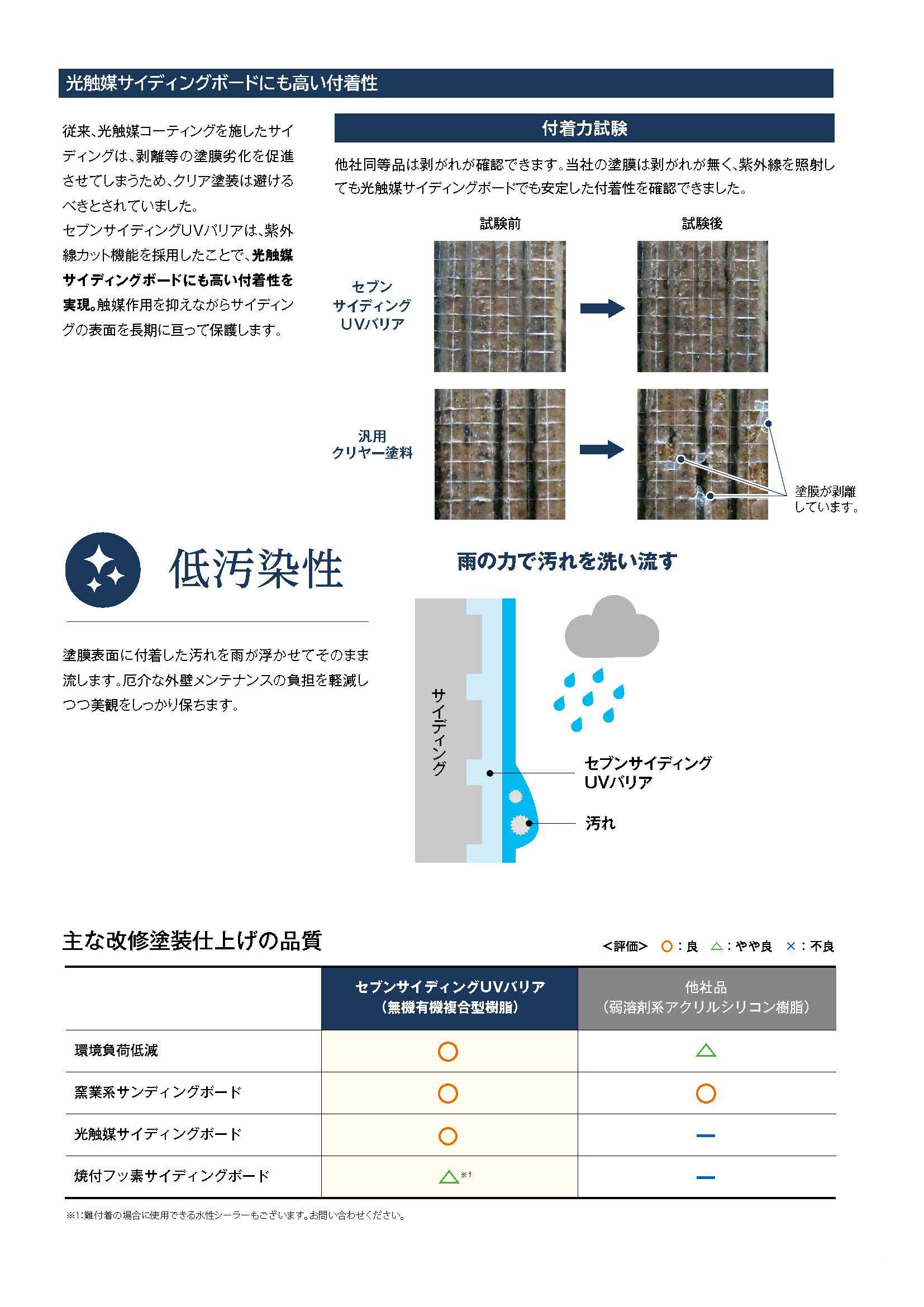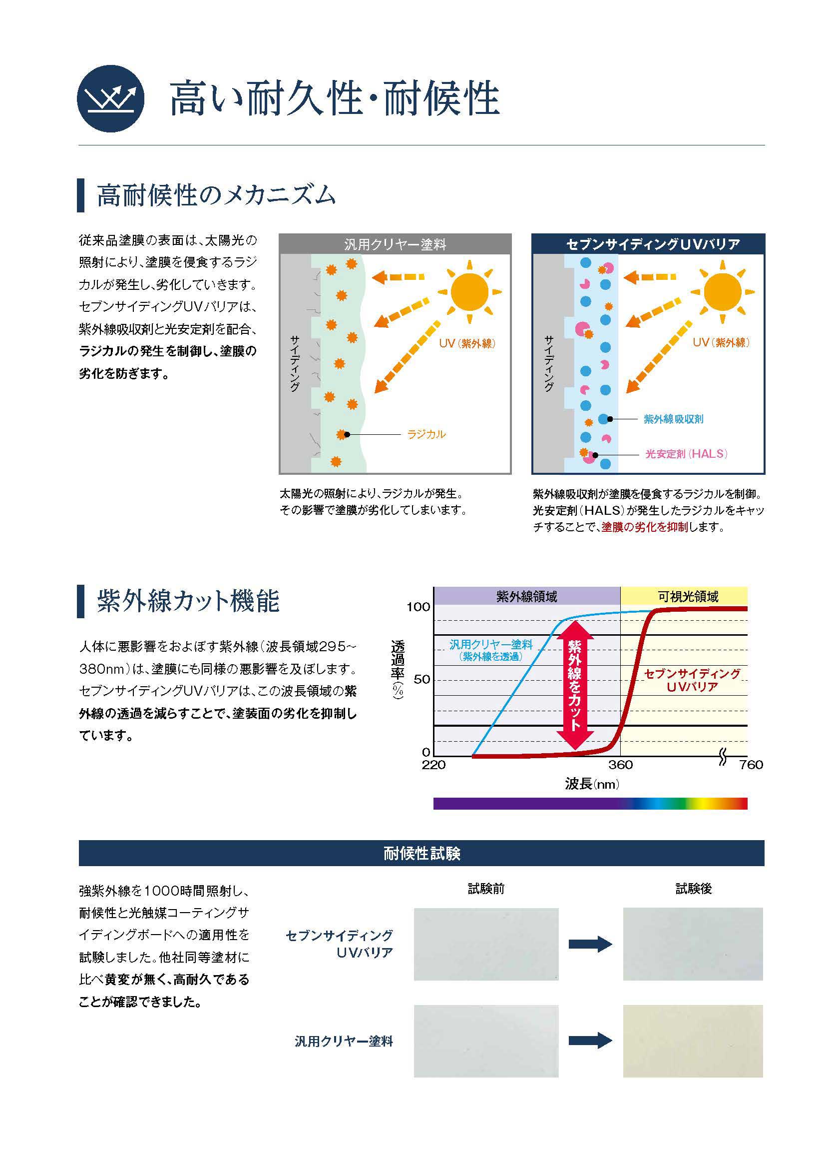 セブンサイディングUVバリアは、美観性と高耐久・耐候性を両立させた高密着透明塗料です。