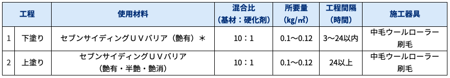 ①セブンサイディングUVバリア艶有の乾燥硬化(乳白色から透明)を確認後、上塗り工程を行ってください。