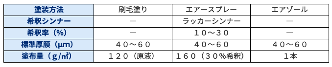 刷毛塗りもしくはスプレーガンで規定の膜厚になるように塗布してください。